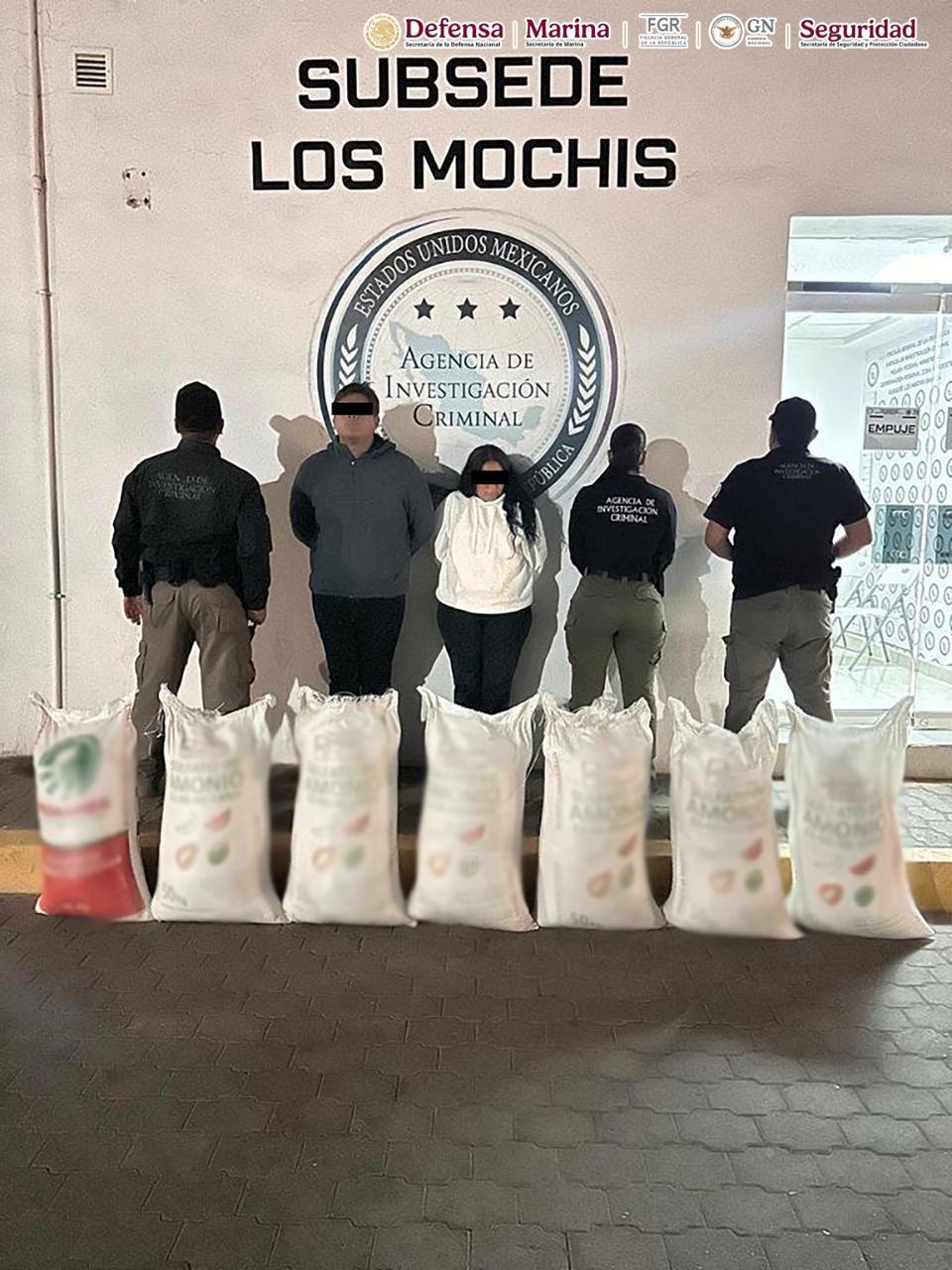 Como parte de las labores de reforzamiento de seguridad, en Sinaloa, en una acción encabezada por elementos de la Agencia de Investigación Criminal (AIC) de la Fiscalía General de la República (FGR), en coordinación con Secretaría de la Defensa Nacional (Defensa), Secretaría de Marina (Semar), Guardia Nacional (GN) y Secretaría de Seguridad y Protección Ciudadana (SSPC), fueron detenidas dos personas que transportaban 320 kilos de metanfetamina en siete costales.