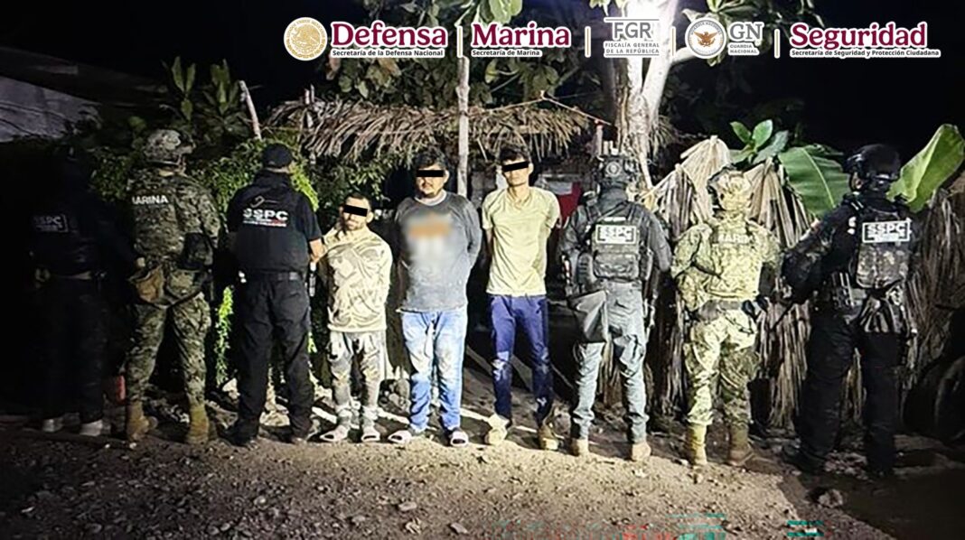En el marco de la Estrategia Nacional contra la Extorsión, en Michoacán, elementos de Secretaría de Seguridad y Protección Ciudadana (SSPC), Fiscalía General de la República (FGR), Secretaría de Marina (Semar), Secretaría de la Defensa Nacional (Defensa) y Guardia Nacional (GN), en coordinación con la Fiscalía y Policía estatal detuvieron a tres hombres vinculados a extorsiones contra productores de limón, uso de drones y artefactos explosivos.